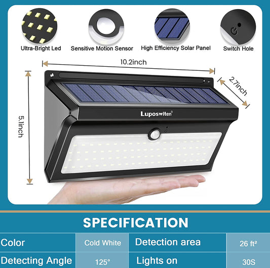 Solar Outdoor Lights 100 LED Motion Sensor Solar Security Lights 4-Pack