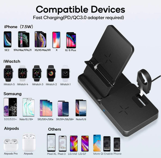 Wireless Charger, Qi-Certified Fast Wireless Charging Station for AirPods/Apple Watch Series/iPhone