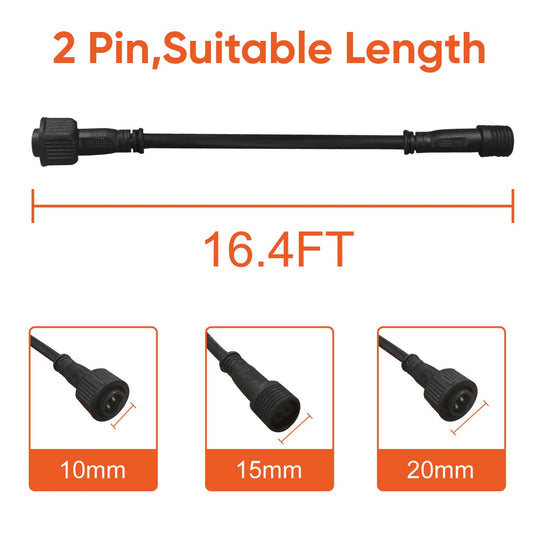 Solar Extension Cable 5m16.4 Feet Extender Wires Cords Two Core with Plug Waterproof IP65 for Solar Flood Lights Solar Street Lights