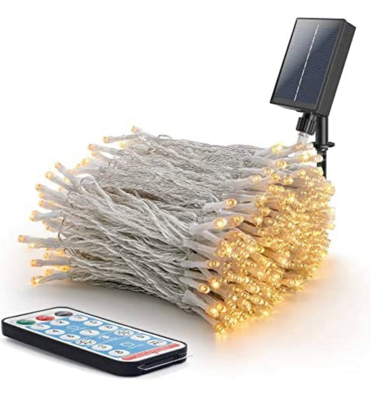165Ft Solar String Lights White Wire Outdoor,500 LED Christmas Lights with 8 Modes and Timer, Remote Control