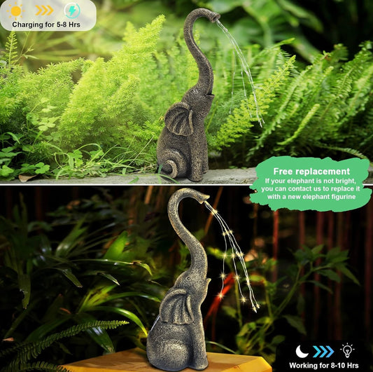 Garden Statues Elephant Decor with LED Solar Lights - Set of 2 Good Luck Christmas Elephant