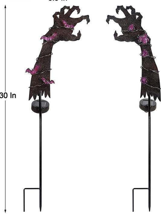 Solar Halloween Yard Decorations, Outdoor LED Solar Powered Ghost Hand Halloween Pathway Lights, Metal Garden Stakes Lawn Yard Ornament, Set of 2