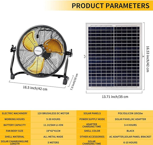 Battery Operated Solar Fan, Solar Powered Portable Fan Can Running 5-24 Hours,Rechargable Fan with USB Output For Emergency Situation