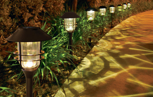 The solar landscape lighting collection consists of fixtures to help illuminate pathways, stairways, and flower beds without a complicated installation process or a ton of maintenance. Because the landscape lights feature long lasting, solar-powered LED lights, once they are placed in their designated spot, they will do all the work for you. The landscape lights absorb sun throughout the day and turn on automatically at night to offer you ambient light and a walking guide.