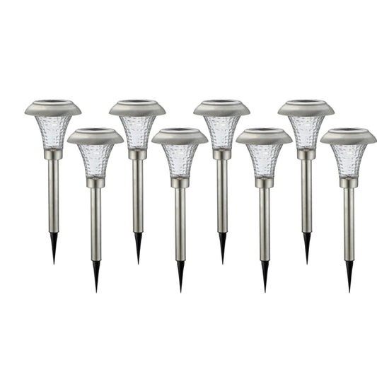 High-End 8 Pack Solar Pathway Lights Glass Stainless Steel Warm White, Auto On/off 15 Lumen