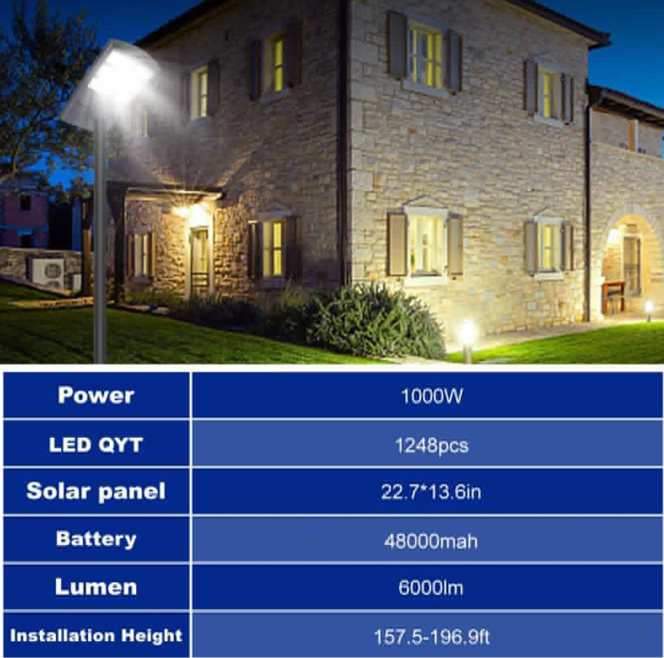 - 💎Ultra Long Lighting Time: The charging conversion efficiency of super large capacity batteries and high-efficiency monocrystalline silicon solar panels reaches more than 21%. It can be fully charged in 5-6 hours during the day. It supports long-time lighting at night until dawn, and can work normally in any bad weather.
