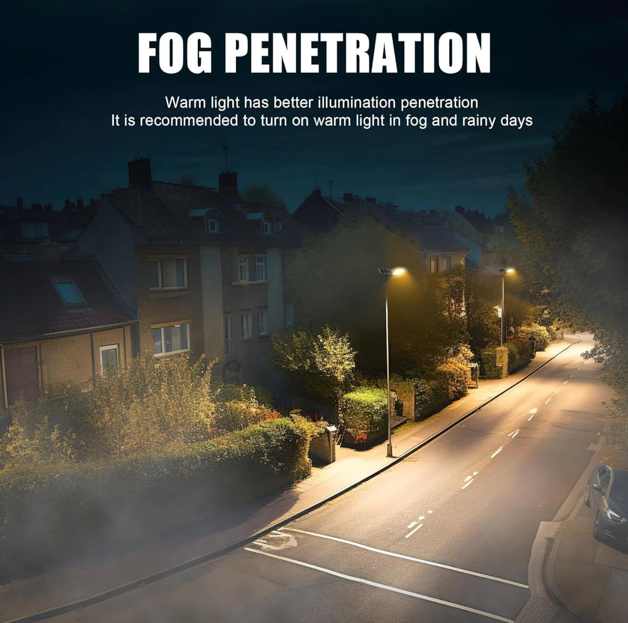 - Introducing the 3800W Tri-Color Solar Street Light, an advanced lighting solution that offers adjustable color temperature to suit your specific needs. With the ability to switch between warm white, cool white, and natural white light, you can create the perfect ambiance for any outdoor space.
