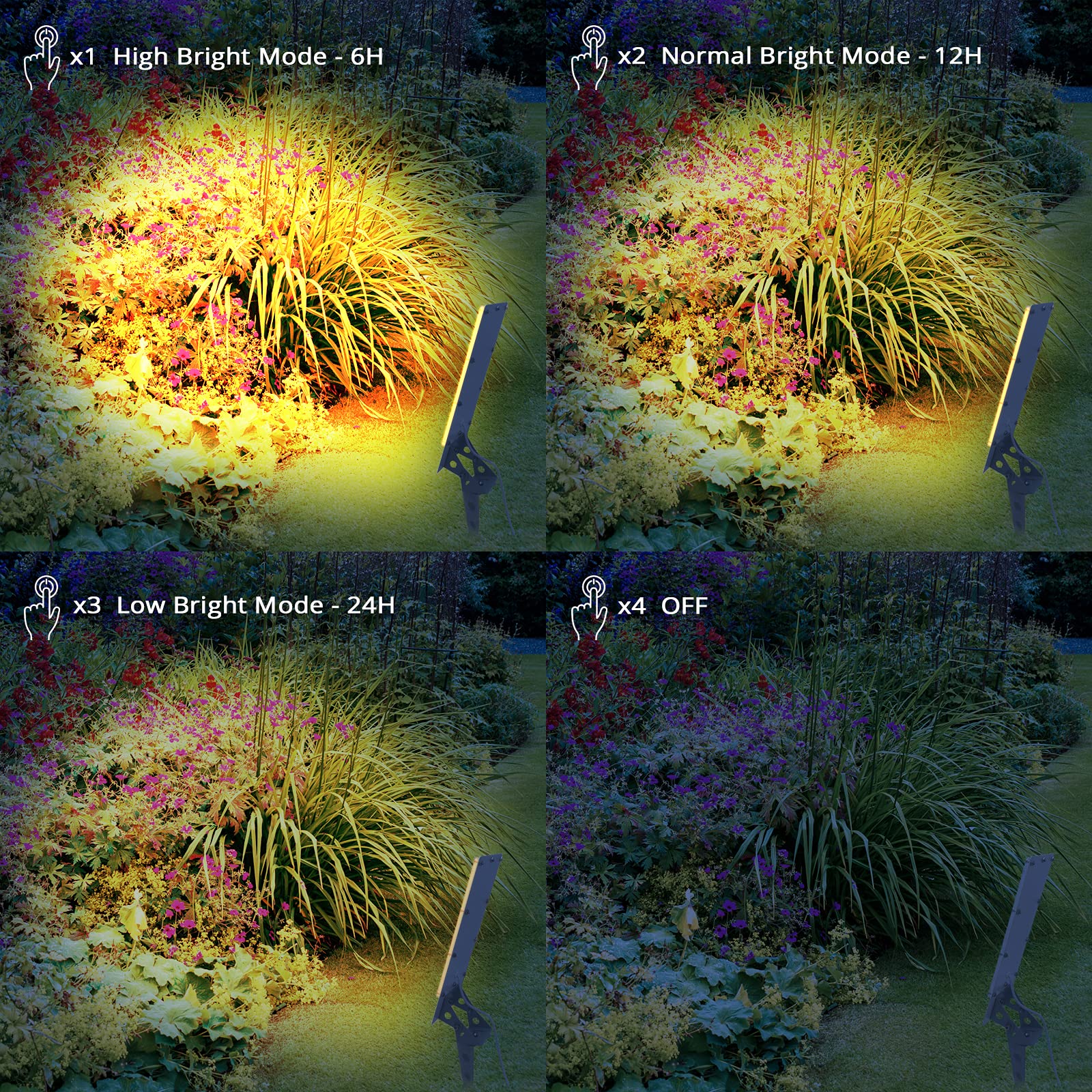 - 【IP65 Waterproof & Easy Installation】The Solar Outdoor Light head is sealed by silicon glue, completely waterproof for outdoor use, stick into the ground with the metal stake as landscape lights, or mount on the wall with the screws as wall lights, optimum for Patio, Porch, Path, Deck, swimming, pool, Yard, Garden, Garage, Driveway, Pathway, etc landscape lighting.