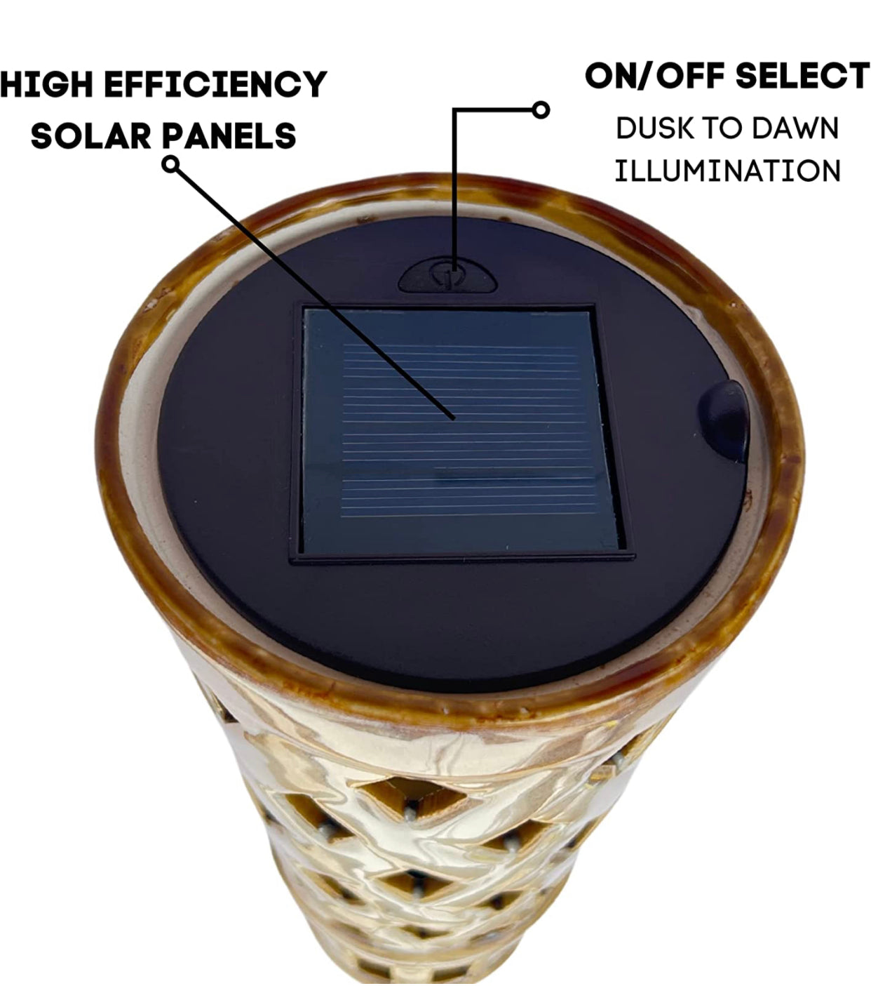 - IP65 Waterproof Luces Solares: Solar lights outdoor waterproof are made of high-quality ceramic, designed to withstand most of weather for multi-season outside decor. No worries about rain, snow, frost and high-temperature. And notice that weather and winter will affect solar lights charging efficiency.
