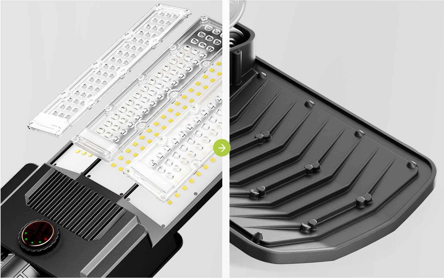 - IP66 Waterproof and Space-grade antioxidant materials: Our street lights is made of advanced oxidation-resistant die-casting material, which ensures that the service life of the product can reach more than 10 years, and the durability is far away from similar products on the market, at the same time, it has IP66 waterproof, which can be used in any weather conditions, and it is not afraid of the high temperature and cold weather, and it can be used in any weather conditions.