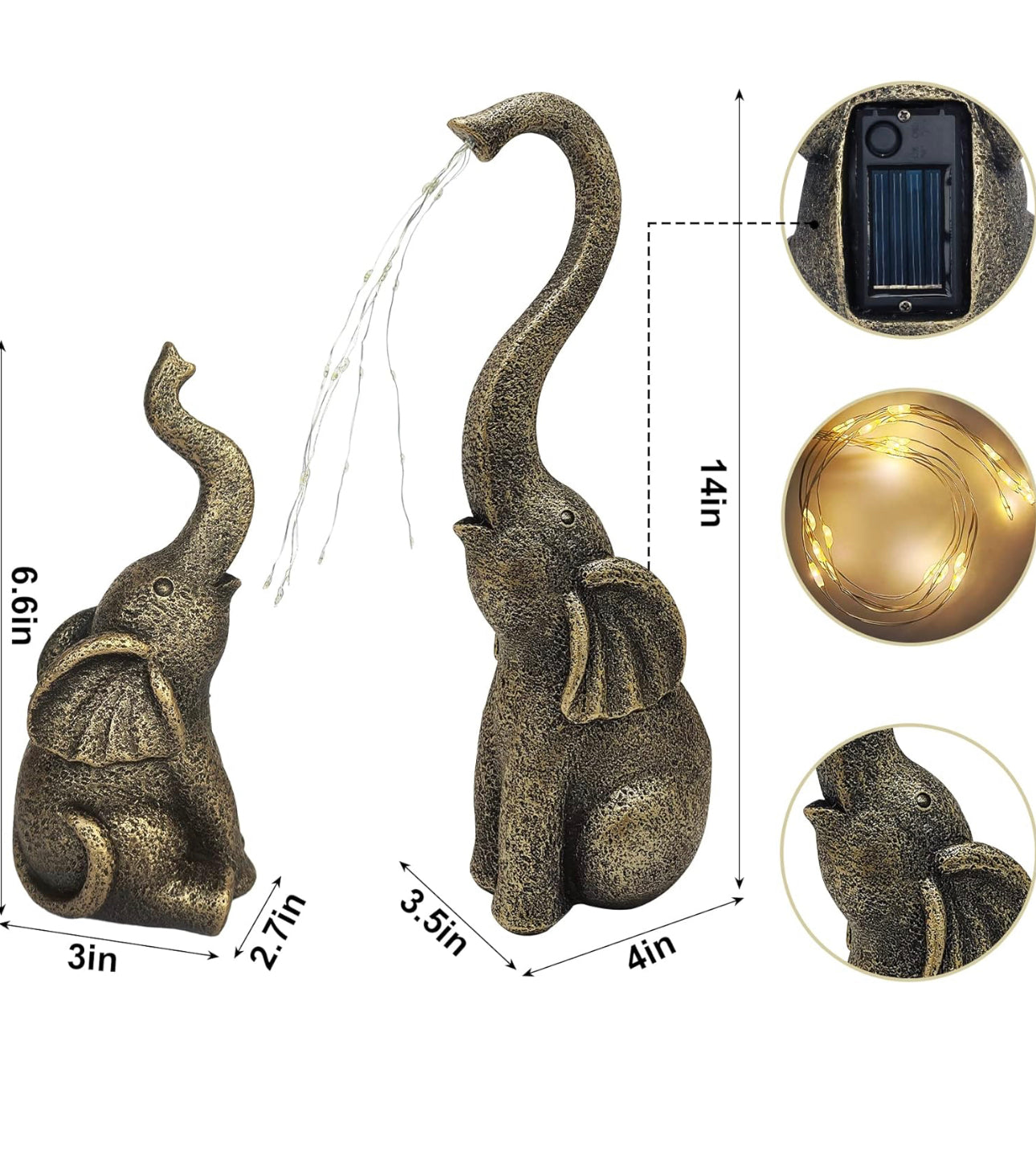 - Elephant Solar String Lights : Illuminate your outdoor space with this solar-powered elephant light string. A small light string is attached to the elephant's nose for outdoor lighting, and a solar panel on the back of the elephant absorbs sunlight during the day. At night, the lights will illuminate the baby elephant and your garden, creating a magical atmosphere.