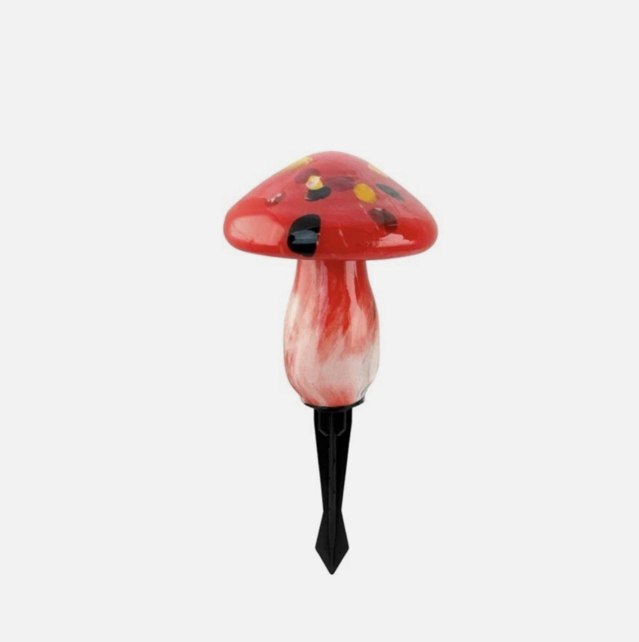 - Dual Prong Stakes: Features robust dual prong stakes that provide secure anchoring for the top-heavy glass mushroom lights.