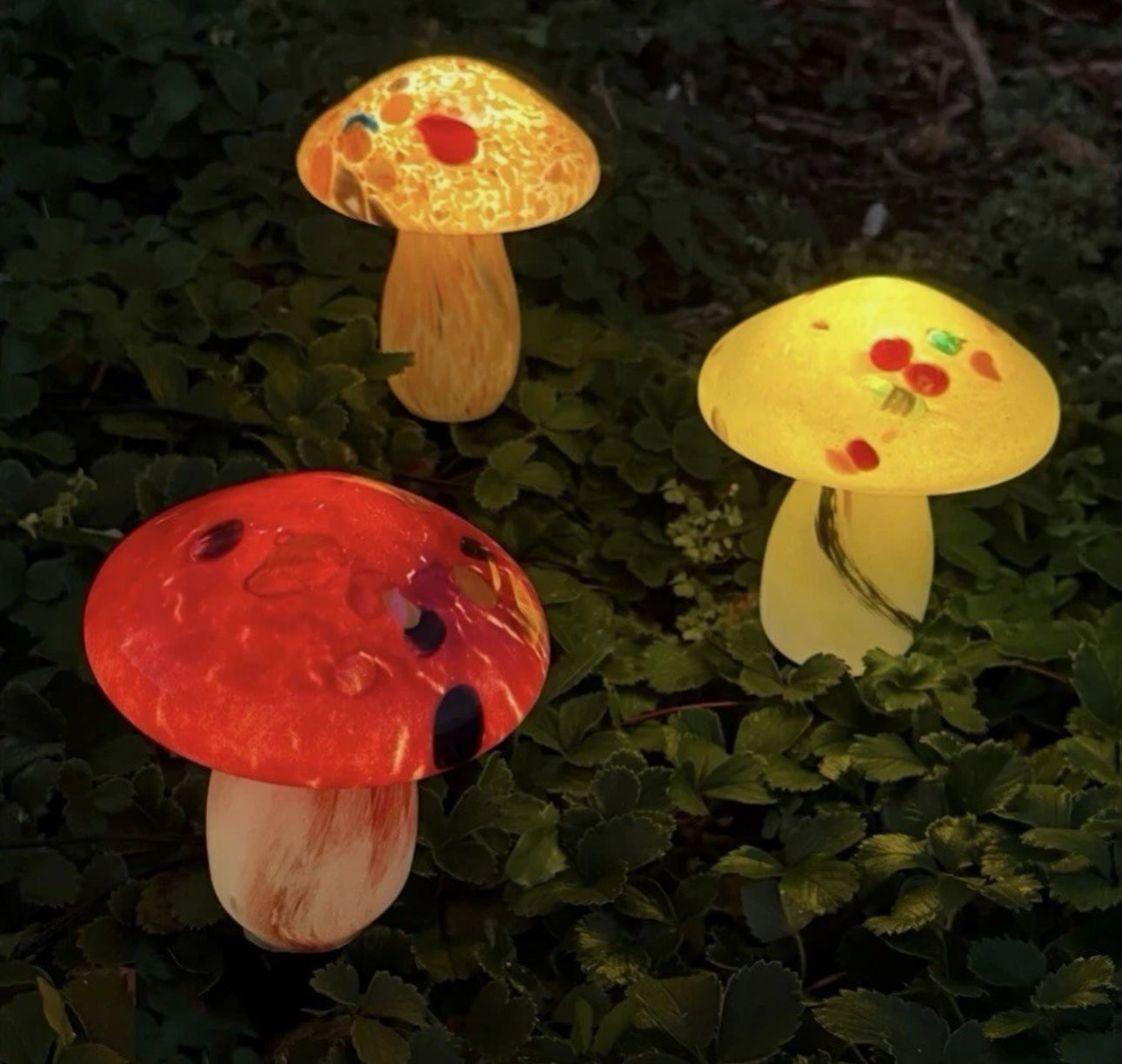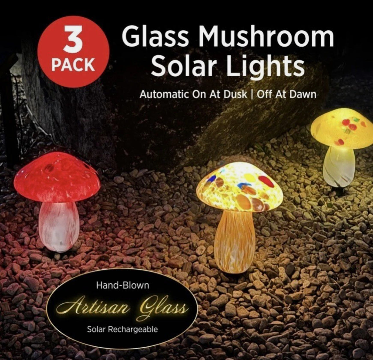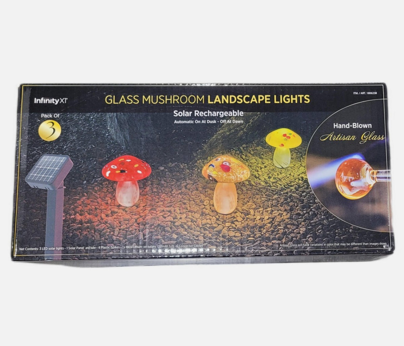 Infinity X1 Solar Glass Mushroom Landscape Accent Light, Set of 3 Pack