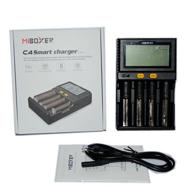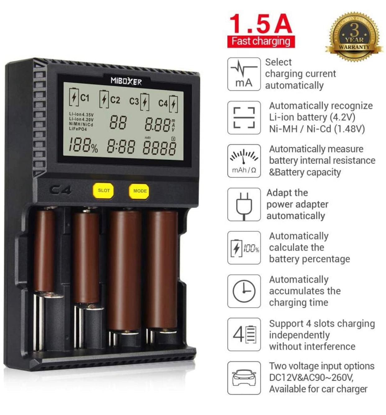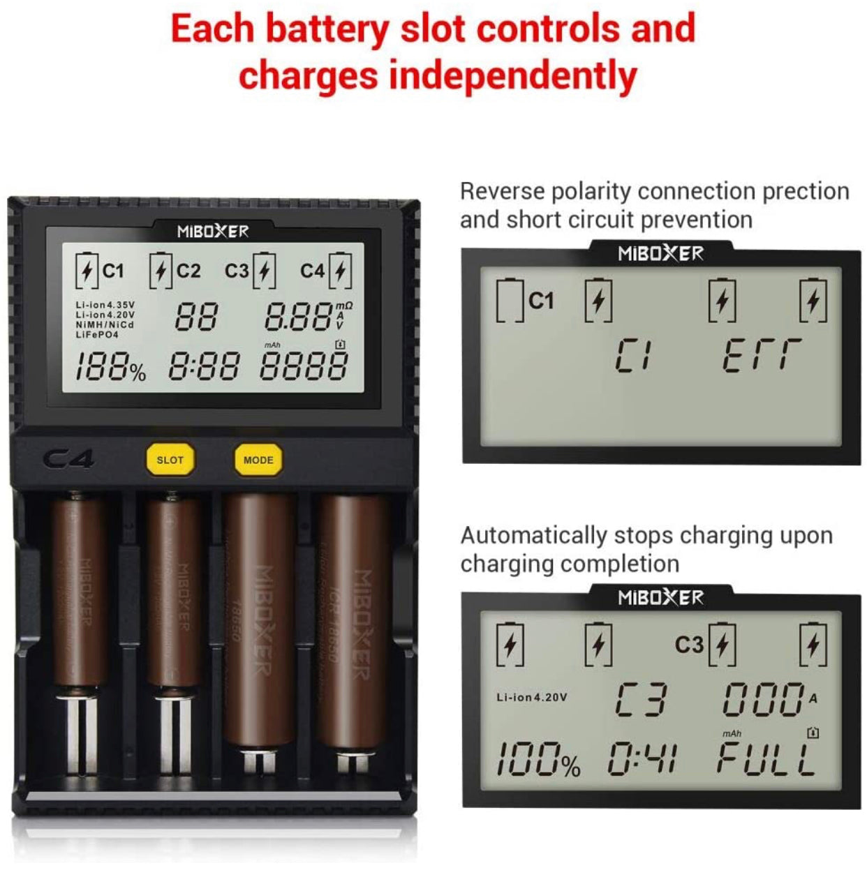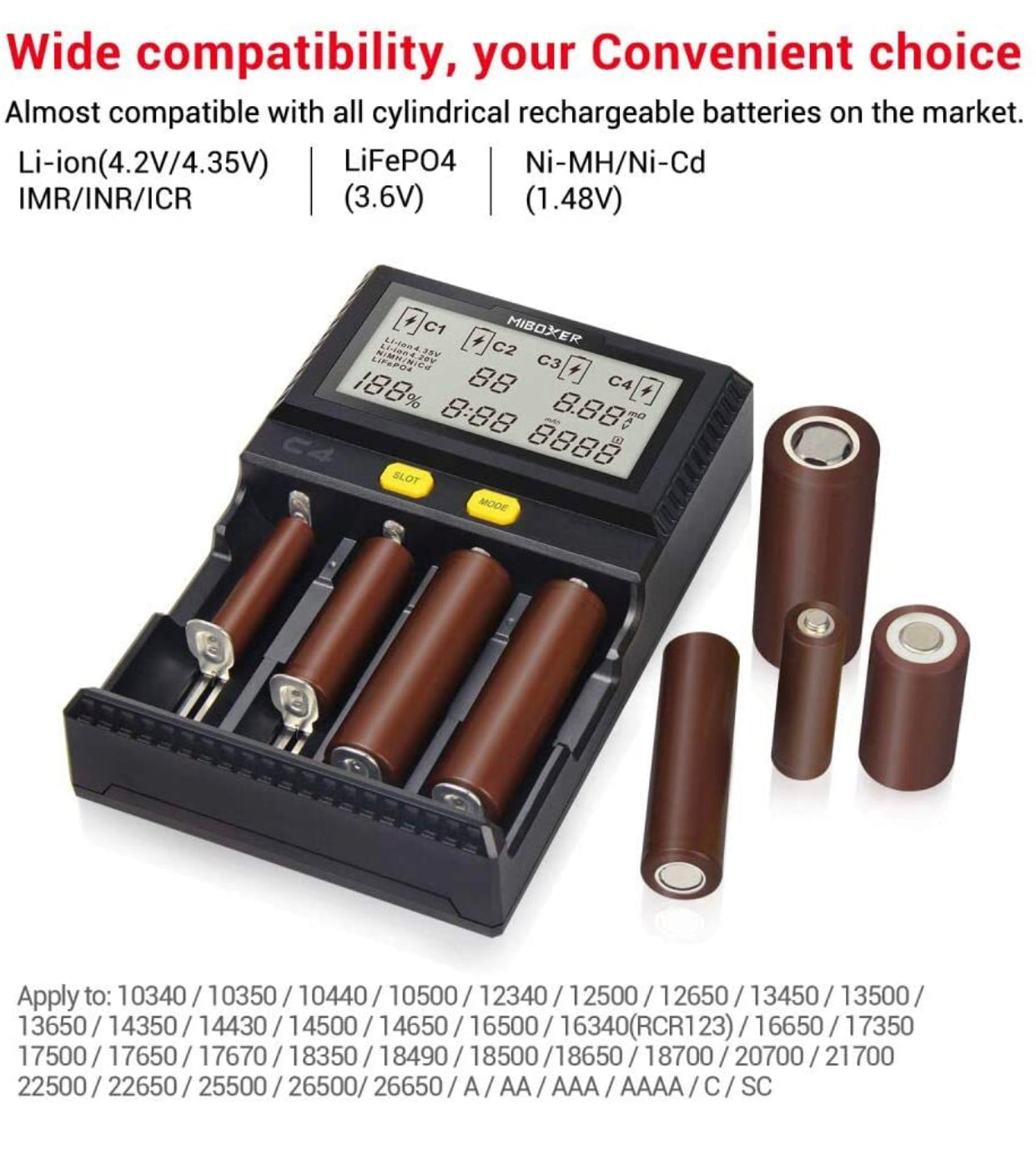 Original MiBOXER Smart Universal 4-Bay Charger, Automatic LCD Display,Fast Charging Rechargeable Li-ion LiFePO4 Ni-MH Ni-Cd AA AAA