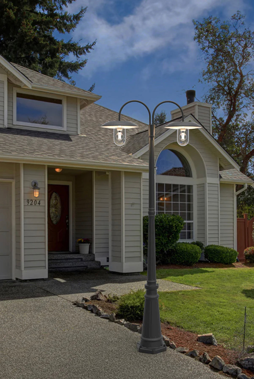 This solar powered vintage street light is designed with durable rust-resistant cast-aluminum construction and clear glass, which can be used for years. And the dual-head modern design adds a charming atmosphere to your home.