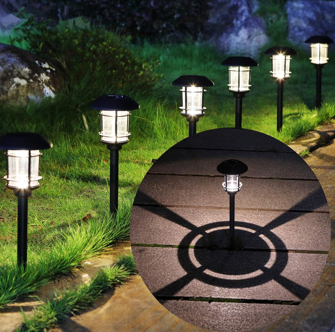 - Beautiful Pattern: Light brightness is 6 lumens, which is 4 X BRIGHTER than general solar garden lights. Warm white LED and lampshade reflector which allow light to flood the space, whilst creating beautiful shadow patterns on the ground. Add a charming, decorative glow to your pathway, decorate your garden, porch or yard.