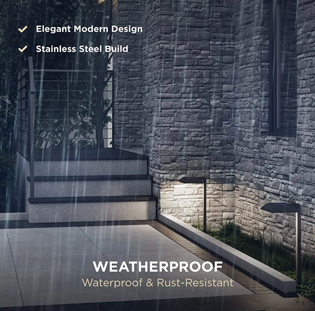 The outdoor solar lights are made of high-quality thick PLASTIC, no need to worry about rust. Suitable for outdoor use, the light can work normally under all kinds of weather. No worries about rain, snow, frost, or sleet