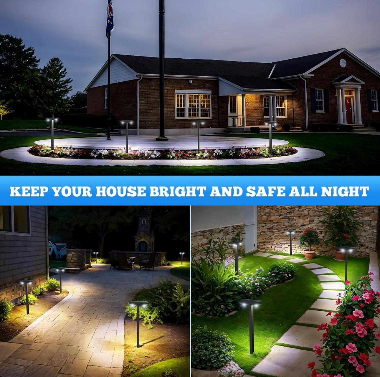 - High Quality Solar Outdoor Lights - Equipped with the latest solar panel, this solar path lights charges 15% faster than other ordinary solar path lights outdoor. It has a built-in 1000mAh battery, which provides 8-10 hours of illumination at night.
