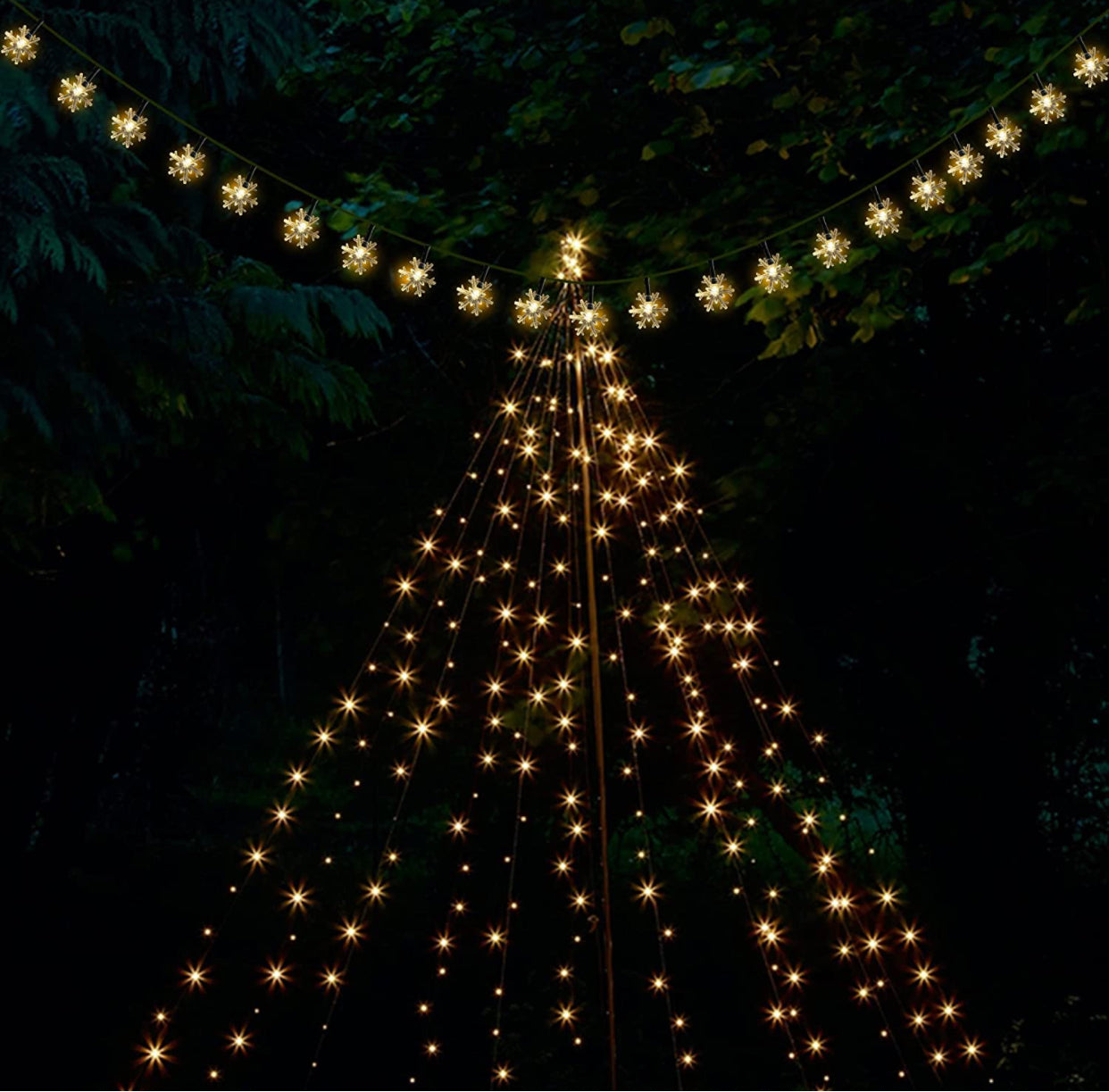 - Solar Powered Christmas Snowflake String Lights: Add a soft, festive glow to your Christmas decor with Twinkle Star 100 super bright LED solar white snowflakes lights, enhancing outdoor lighting in every holiday season. The string lights is 32.5 ft, Long power cord: 6.5 ft, Total Length: 39 ft.